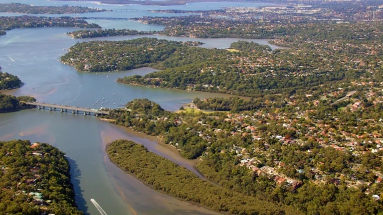The Georges River is a significant river in the Sydney metropolitan area of New South Wales, Australia. It flows for about 96 kilometers (60 miles) from its source in the southern highlands of the Great Dividing Range, eventually emptying into Botany Bay, an estuary of the Tasman Sea. The river passes through several local government areas, including Bankstown, Hurstville, Kogarah, and Liverpool. The river is surrounded by natural reserves, with walking tracks, picnic areas, and opportunities for wildlife observation.